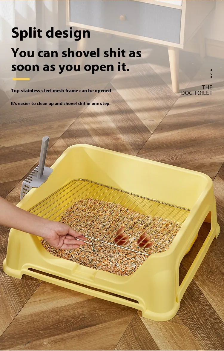 Para mayor comodidad, el Marco grande de malla de acero inoxidable para baño de perros se puede usar en combinación con almohadillas para orinar, césped artificial u otros productos de entrenamiento para ir al baño para crear un área completa para que su perro haga sus necesidades. Estos accesorios adicionales facilitan mantener el área del baño de su perro limpia y cómoda.