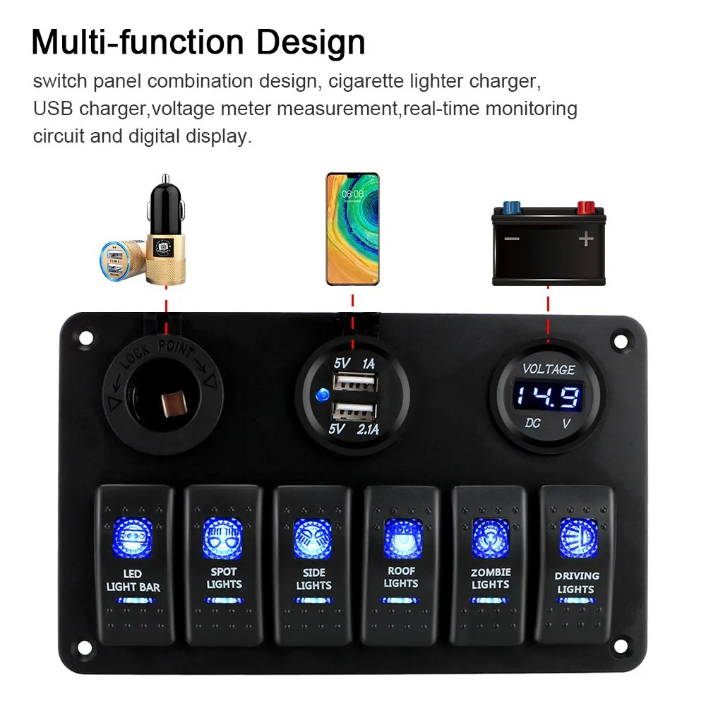 Durable Construction: Built with corrosion-resistant materials, this switch panel is designed to handle exposure to saltwater, humidity, and temperature changes, ensuring long-lasting performance.