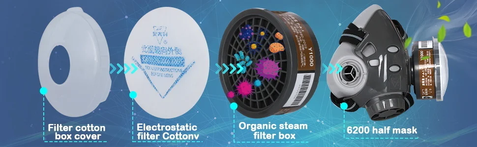 - Ideal para entornos con exposición a pinturas en aerosol, polvo, humos de pintura y gases tóxicos, lo que garantiza que respire aire limpio mientras trabaja.