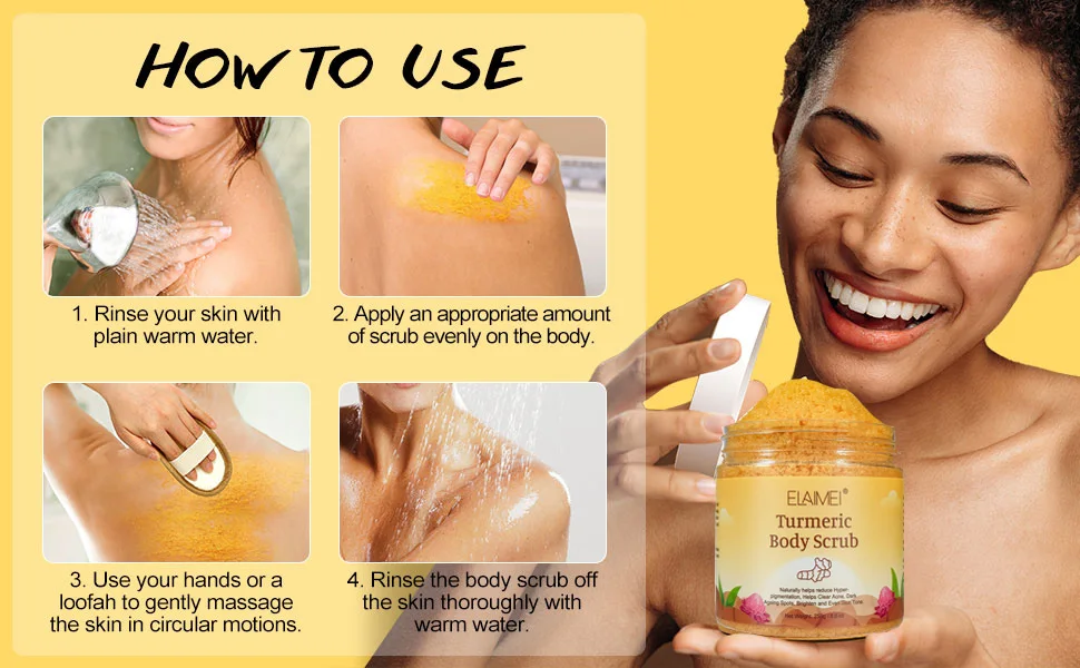 Start by cleaning your skin with a gentle body wash to remove any dirt or oils. This will prepare your skin for the scrub.