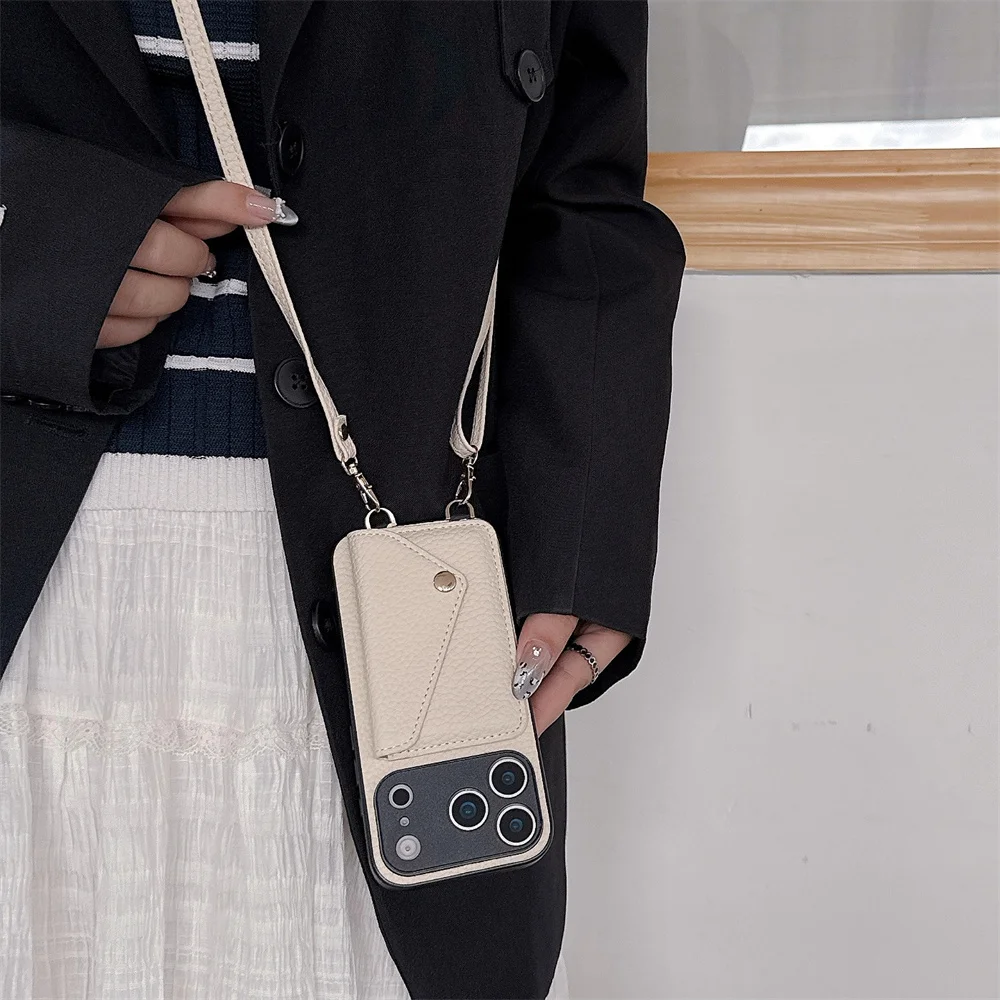 Crossbody wallet card holder phone case For iPhone 17Air 16, 15, 14, 13, 12, 11 Pro Max, XR with lanyard protective cover