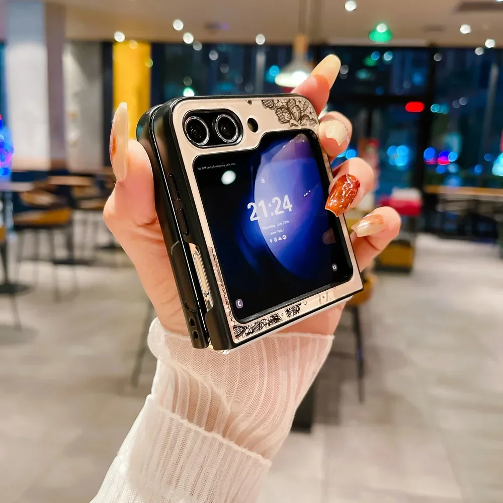 For Samsung Galaxy Z Flip 5 4 3 5G MagSafe Magnetic Phone Case Stand Holder Glitter Bling Diamond 3D Ring Cover For Z Flip5 4 3 5G