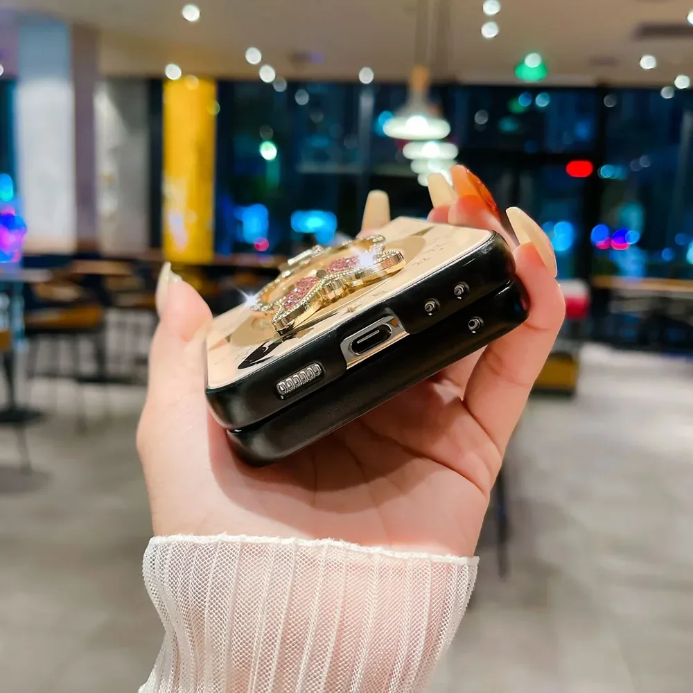 Material: Aluminum, Color: Gold - For Samsung Galaxy Z Flip 5 4 3 5G MagSafe Magnetic Phone Case Stand Holder Glitter Bling Diamond 3D Ring Cover For Z Flip5 4 5G