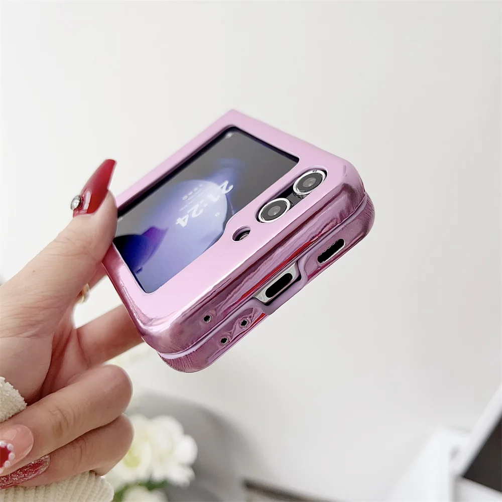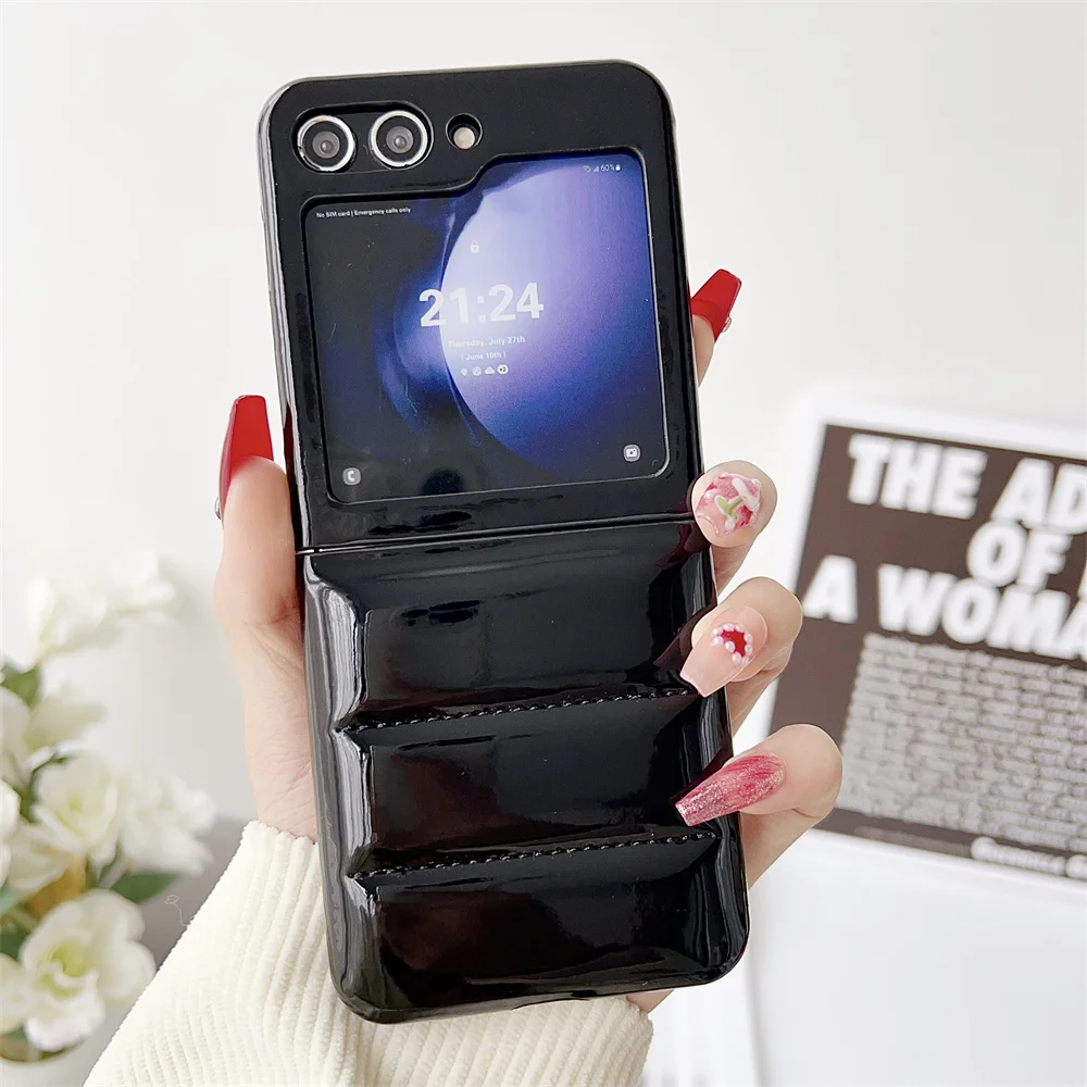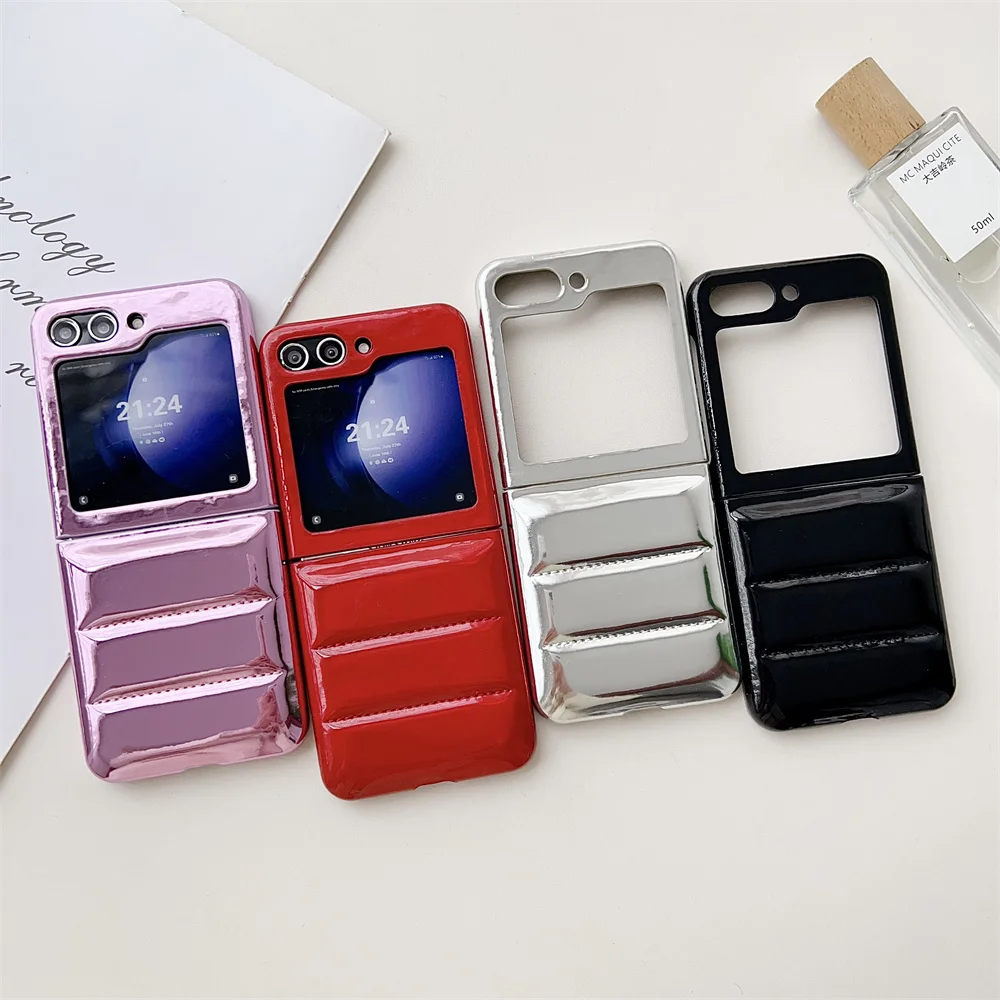 for Samsung ZFlip5 Luxury Down Jacket Glossy Case for Samsung Galaxy Z Flip 5 4 3 flip4 Solid Color Plating Soft Silicone Cover