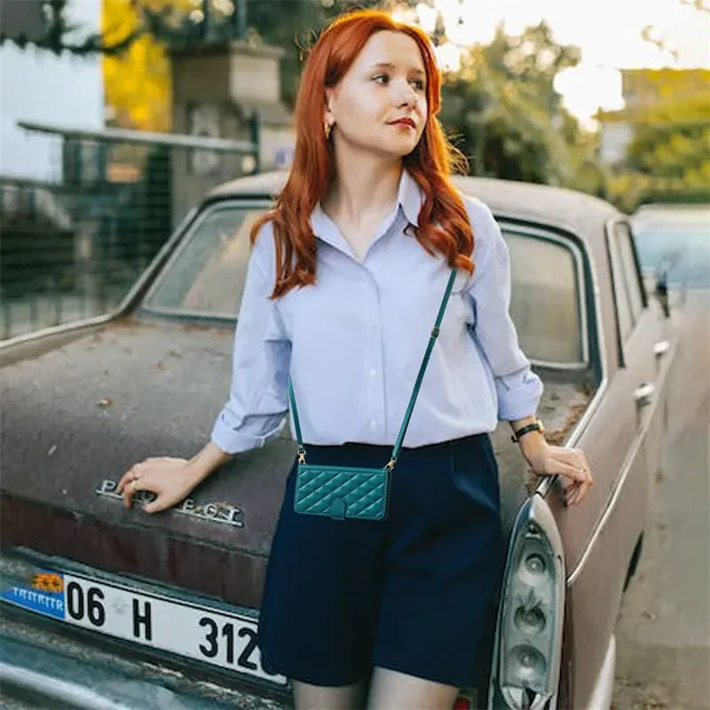 Material: NEOPRENE, Color: Black - Long lanyard Flip Leather Phone Case for Samsung Galaxy S24 Ultra S23 FE S22 S21 S20 S10 Plus Wallet Card Cover Coque