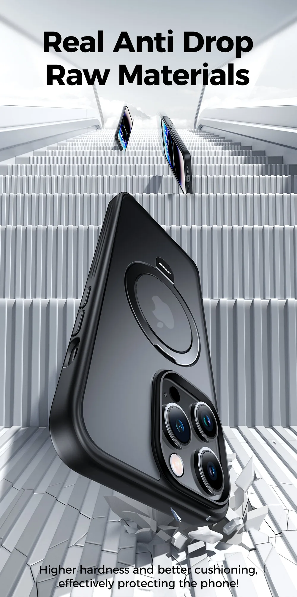 【Hands-Free, Hassle-Free】Joyroom For iPhone 14 Pro phone case incorporates an innovative invisible stand design with an exclusive appearance patented. Constructed with the LIGHTWEIGHT YET DURABLE aerospace aluminum alloy, the circular kickstand brings the portability of the phone case to a new level. In addition, it can be placed in portrait or landscape mode stably. You can adjust it between 0°~140° as your wish. Enjoy every watching moment.