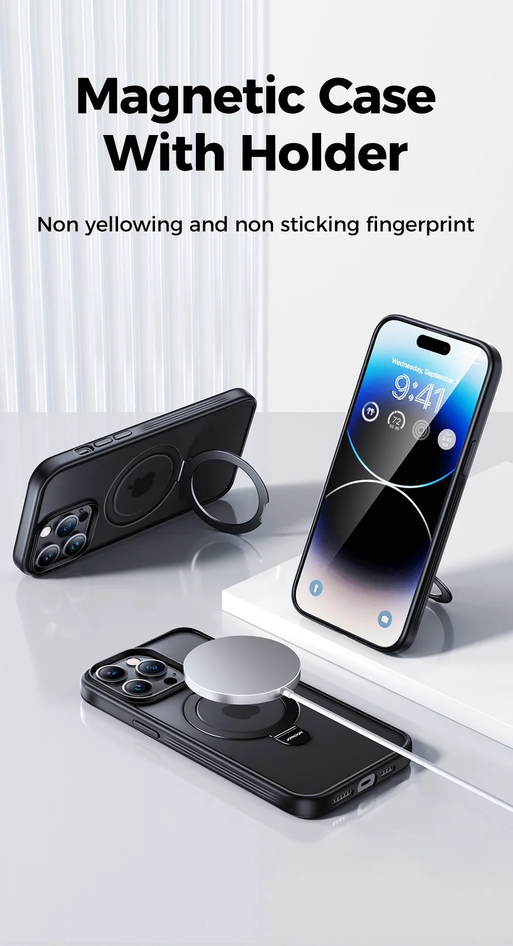 �� All-New Magnetic Series - Beyond BeingticiansAfter years of deliberate planning and designing, Joyroom is the FIRST TO ENGINEER the brand-new Invisible Magnetic Series for iPhone 14 Pro Case. We combined the strong magnetic technology with a foldable kickstand by applying our compact and practical design philosophy. MagicStand case for iPhone 14 Pro easily attaches to all Magnetic accessories. The versatile kickstand on the back of the phone case folds back into a groove when unused.