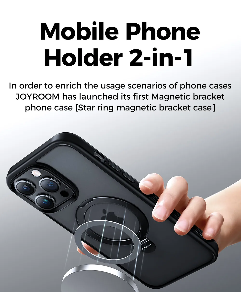 In order to enrich the usage scenarios of phone cases,JOYROOM has launched its first Magnetic bracket phone case [Star ring magnetic bracket case]