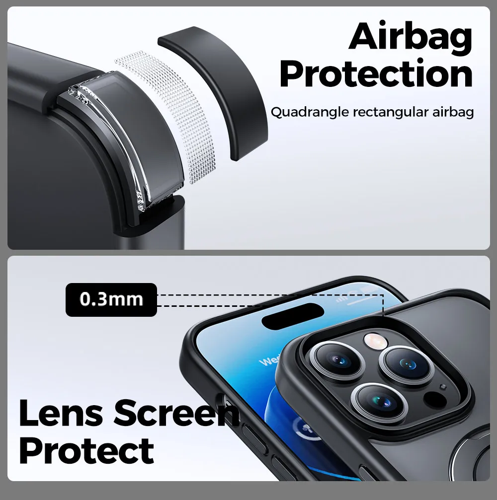 【Redefining Mil-Grade Drop Protection】Based on 5000+ extreme drop resistance tests,for iPhone 14 Pro cases' durability and sturdiness surpass most general phone cases. Furthermore, the shockproof polycarbonate back and the Airbag cushions increase its durability and protect your phone against everyday drops and bumps. A 0.3 mm offset border over the camera opening prevents the lens from being scratched.