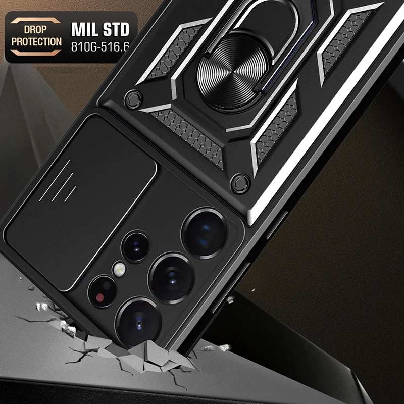 Material: Polyester, Color: Red - Shockproof Armor Case For Samsung Galaxy S20 S21 S22 S23 S24 Plus Ultra FE With Car Magnetic Ring Holder Phone Cover