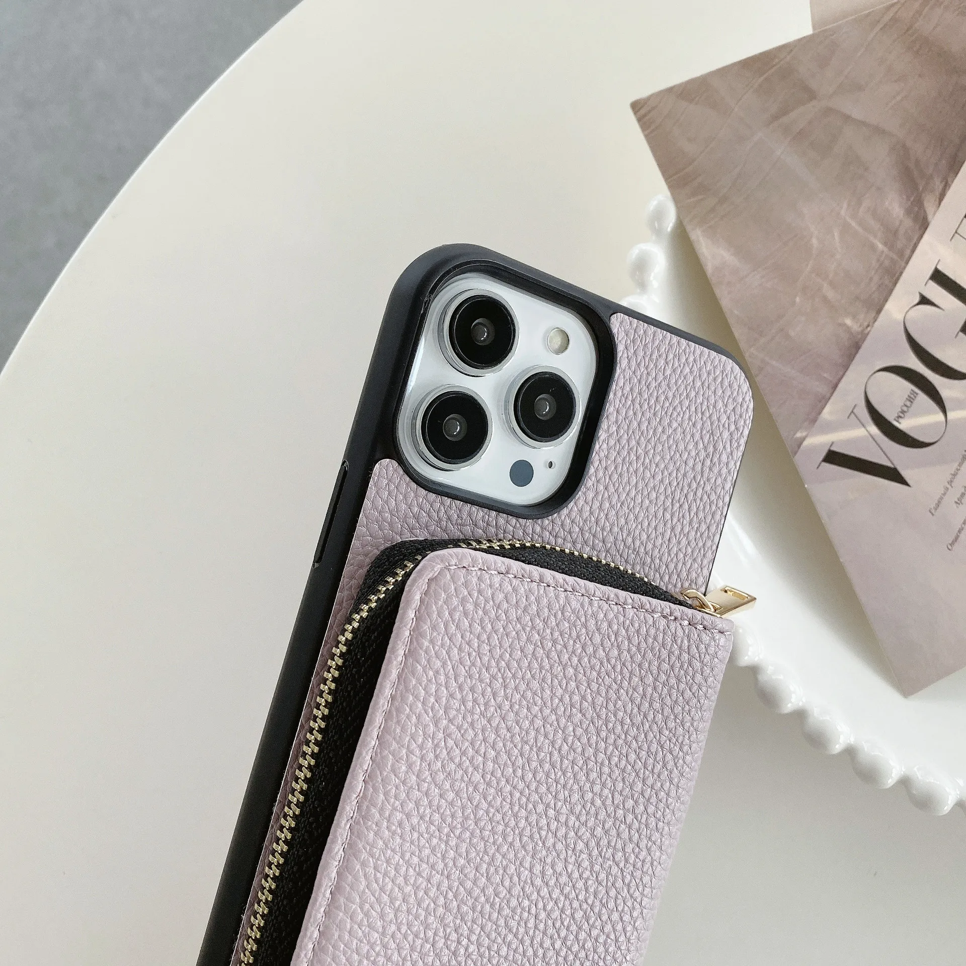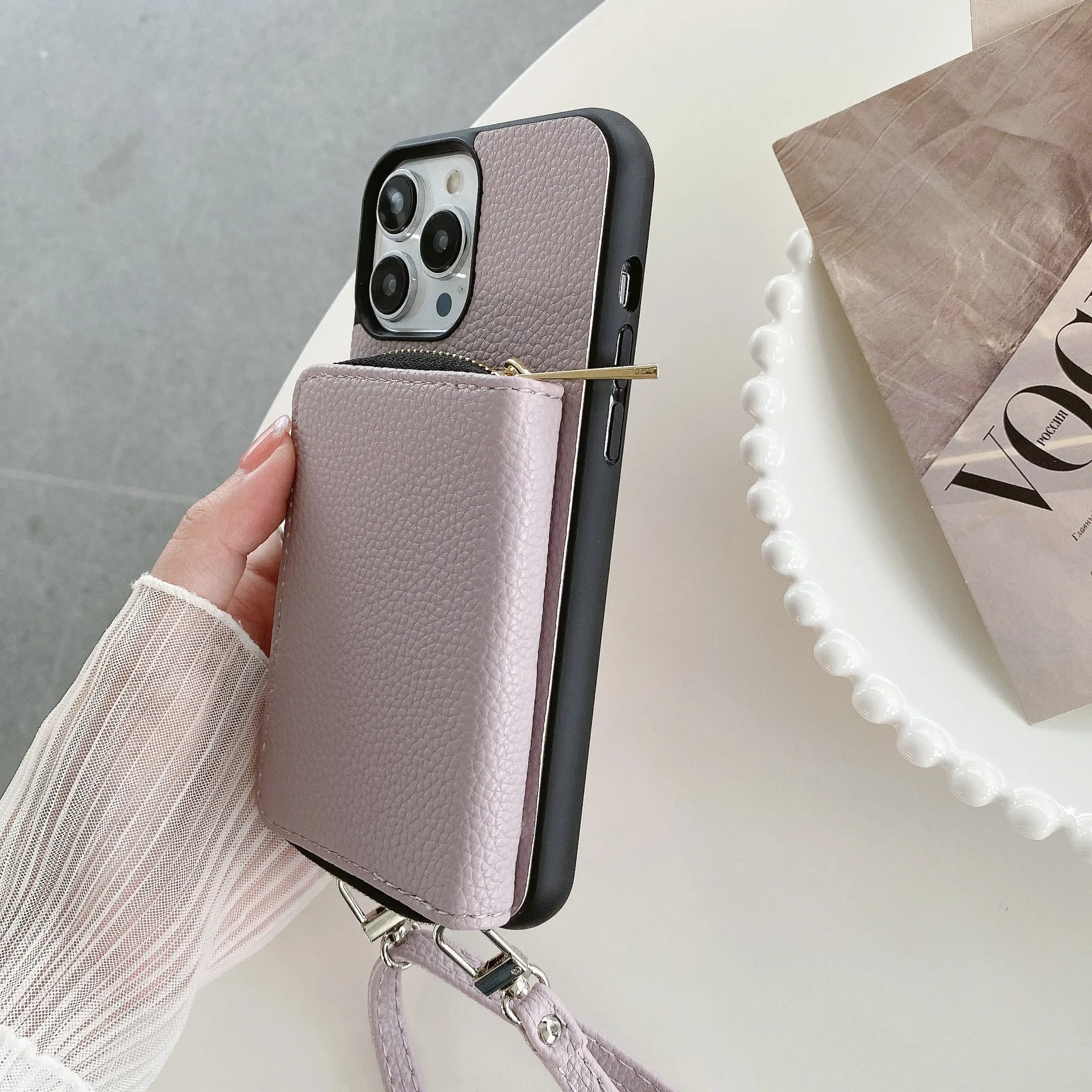 Zipper Wallet Phone Case For iPhone 16 15 14 13 12 Mini 11 Pro XS Max X 8 7 Plus Card Slot Holder Crossbody Lanyard Soft Leather Cover