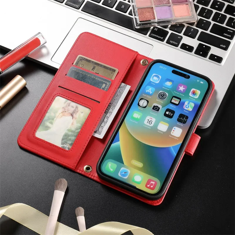 Material: PVC, Color: Pink - Long lanyard Flip Leather Phone Case for Samsung Galaxy S24 Ultra S23 FE S22 S21 S20 S10 Plus Wallet Card Cover Coque