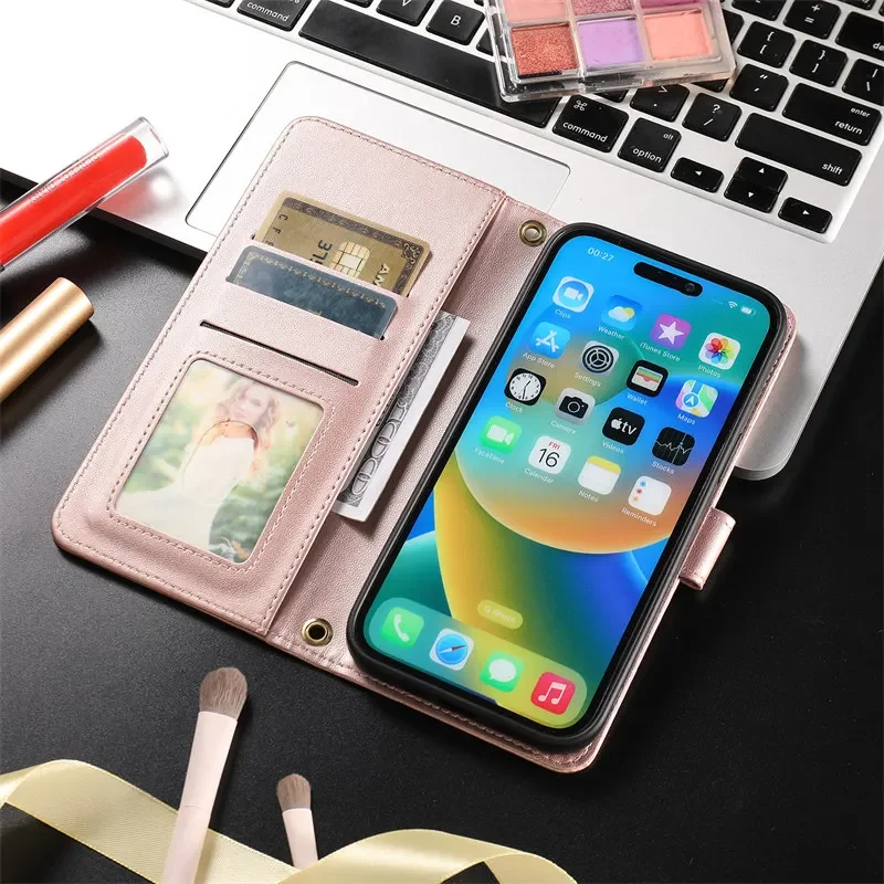 Material: tpu, Color: Red - Long lanyard Flip Leather Phone Case for Samsung Galaxy S24 Ultra S23 FE S22 S21 S20 S10 Plus Wallet Card Cover Coque