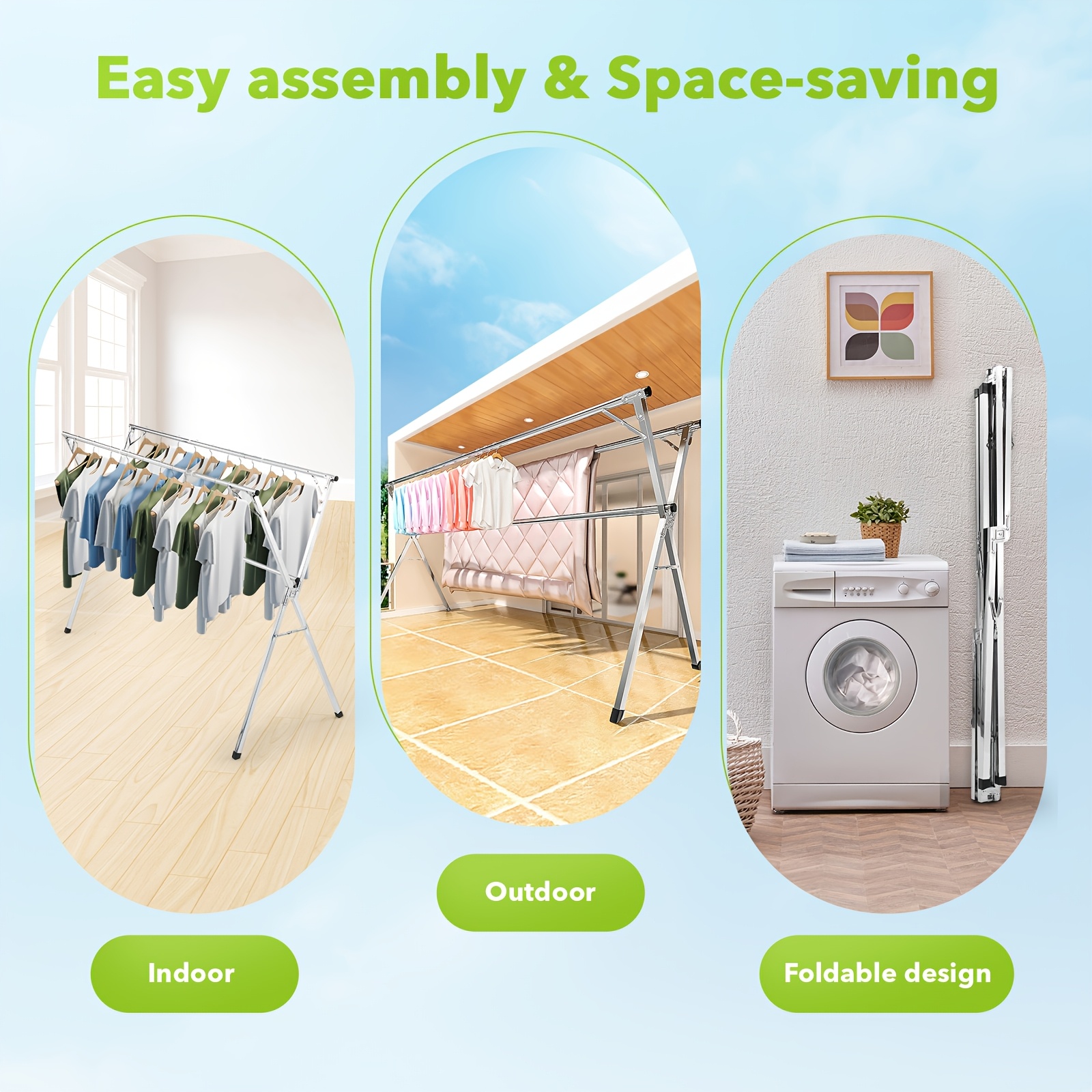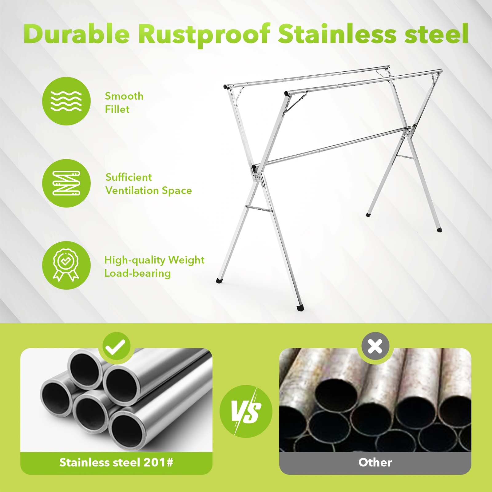 - Durable and Long-Lasting: Built from rust-resistant stainless steel, this drying rack can withstand outdoor elements, making it perfect for year-round use.