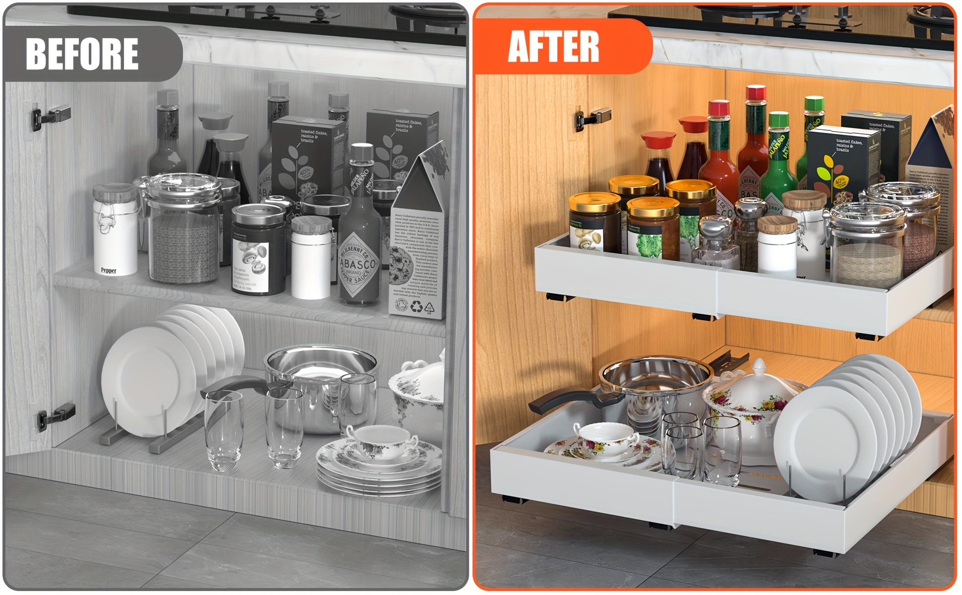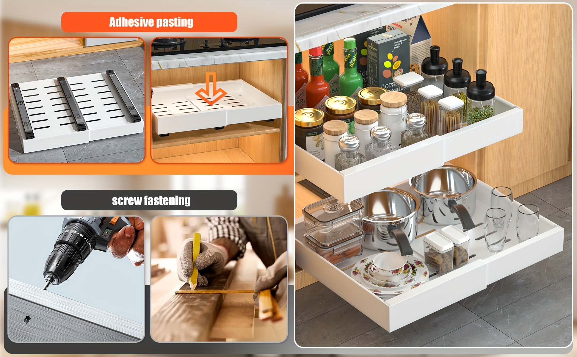 Constructed from heavy-duty metal with a scratch-resistant painted finish, this organiser withstands frequent use, moisture exposure, and the demands of busy kitchens. The pull-out drawer system enhances visibility and eliminates the need to dig through cluttered cabinets, while the upper and lower shelf layout allows users to separate items efficiently. With an easy installation process that requires minimal tools, this MCMLS rack transforms difficult-to-reach spaces into neatly arranged, functional storage zones.