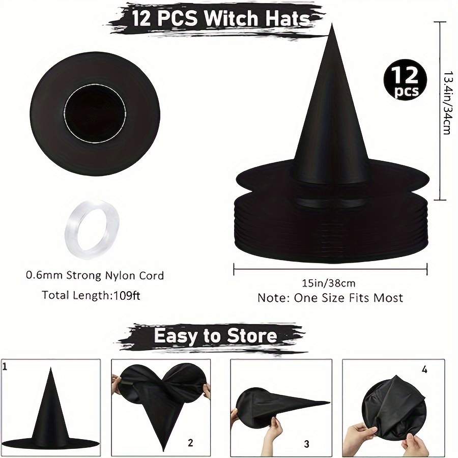 Versatile and reusable, this set enhances holiday celebrations including Halloween, Hocus Pocus–themed events, and festive Christmas novelty decorations. The hats pack flat for easy storage and can be arranged at various heights to create eye-catching visual effects for guests, children, and partygoers. Whether used for décor, photo props, party accents, or costume add-ons, these hats help transform any space into a lively, magical environment.