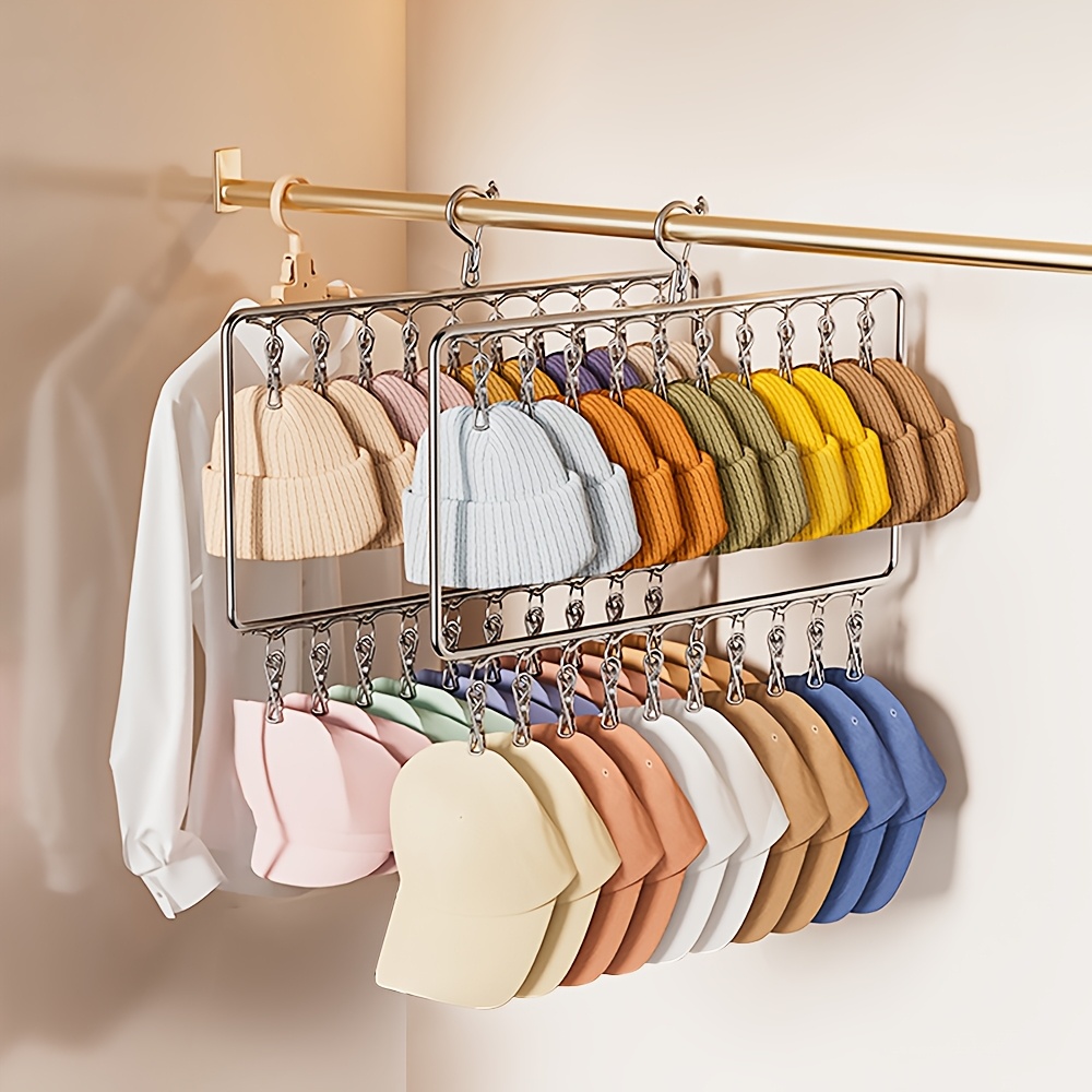 Description – 1pc MCMLS Heavy-Duty Stainless Steel 2-Tier Hat Hanger Organizer