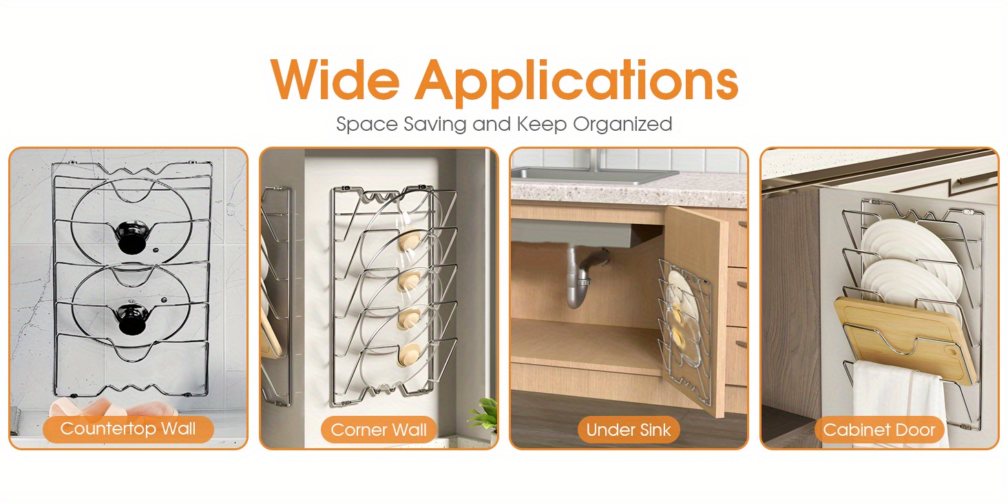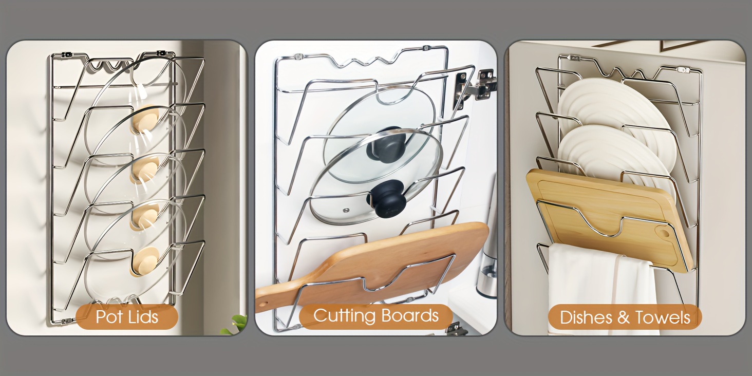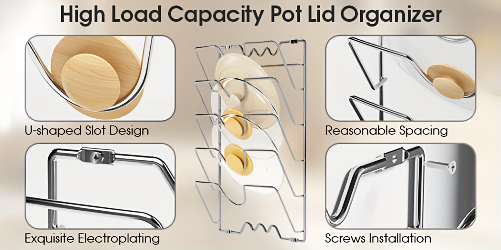 Resists bending and maintains stability while holding multiple pot lids securely.
