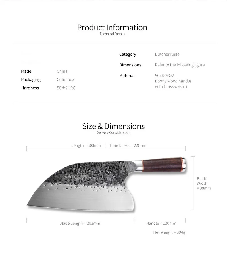 Heavy-Duty Blade Construction: Designed for chopping through meat and bones with ease.