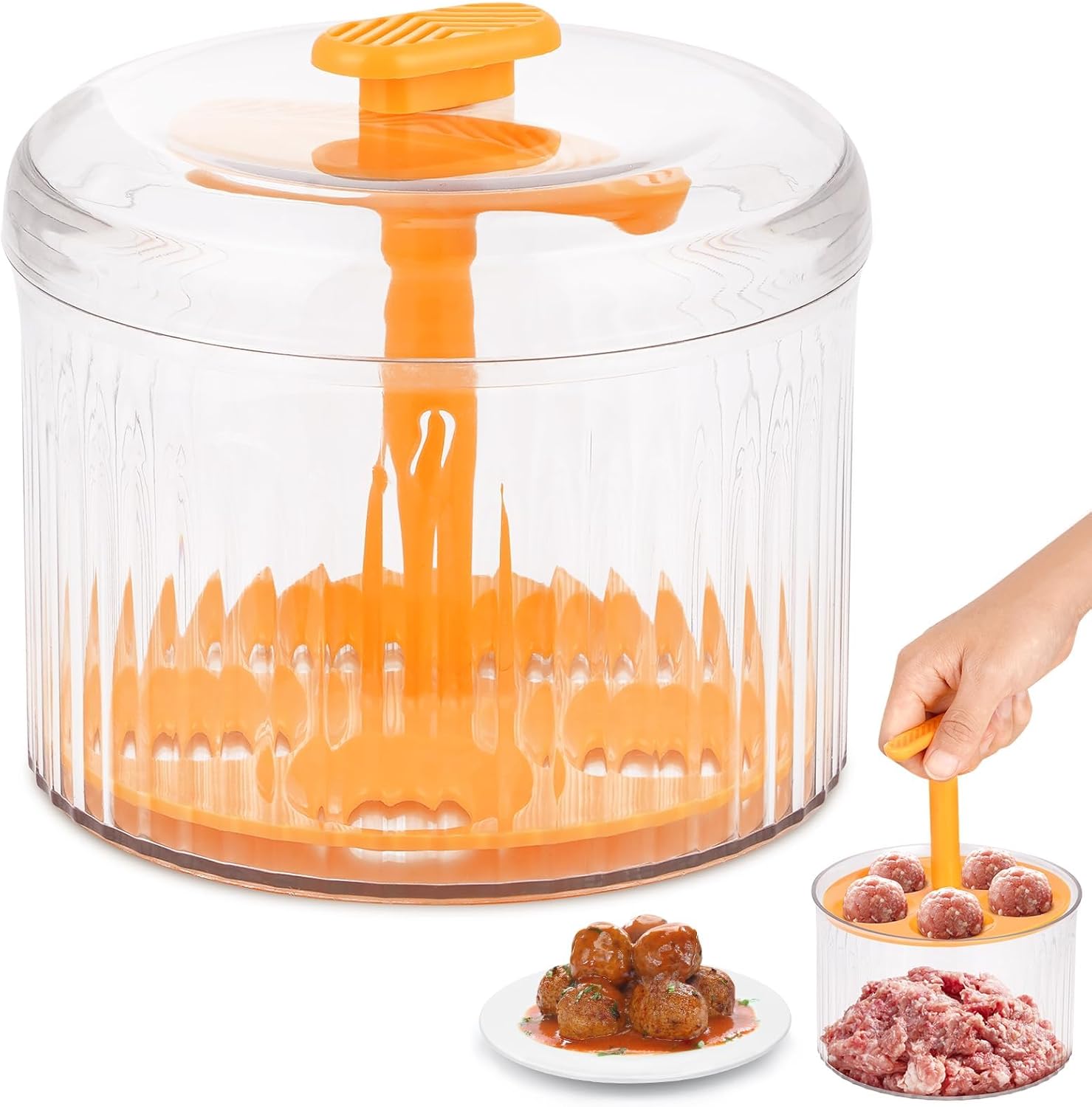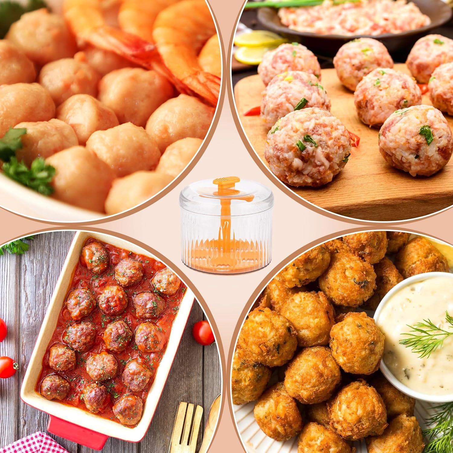 【Creative Kitchen Quintuple Meatball Maker】 This creative meatball maker is designed with a press and container, without getting your hands dirty! Say goodbye to sticky hands and messy countertops.