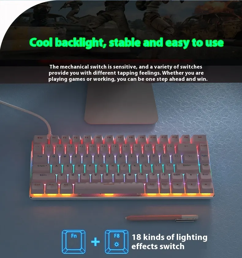 Mechanical Keyboard 82 Keys White Backlight Style – Precision Gaming and Typing Experience