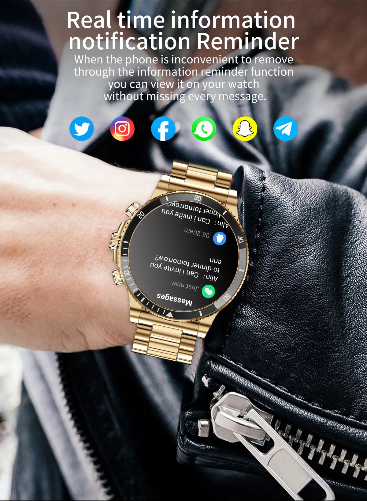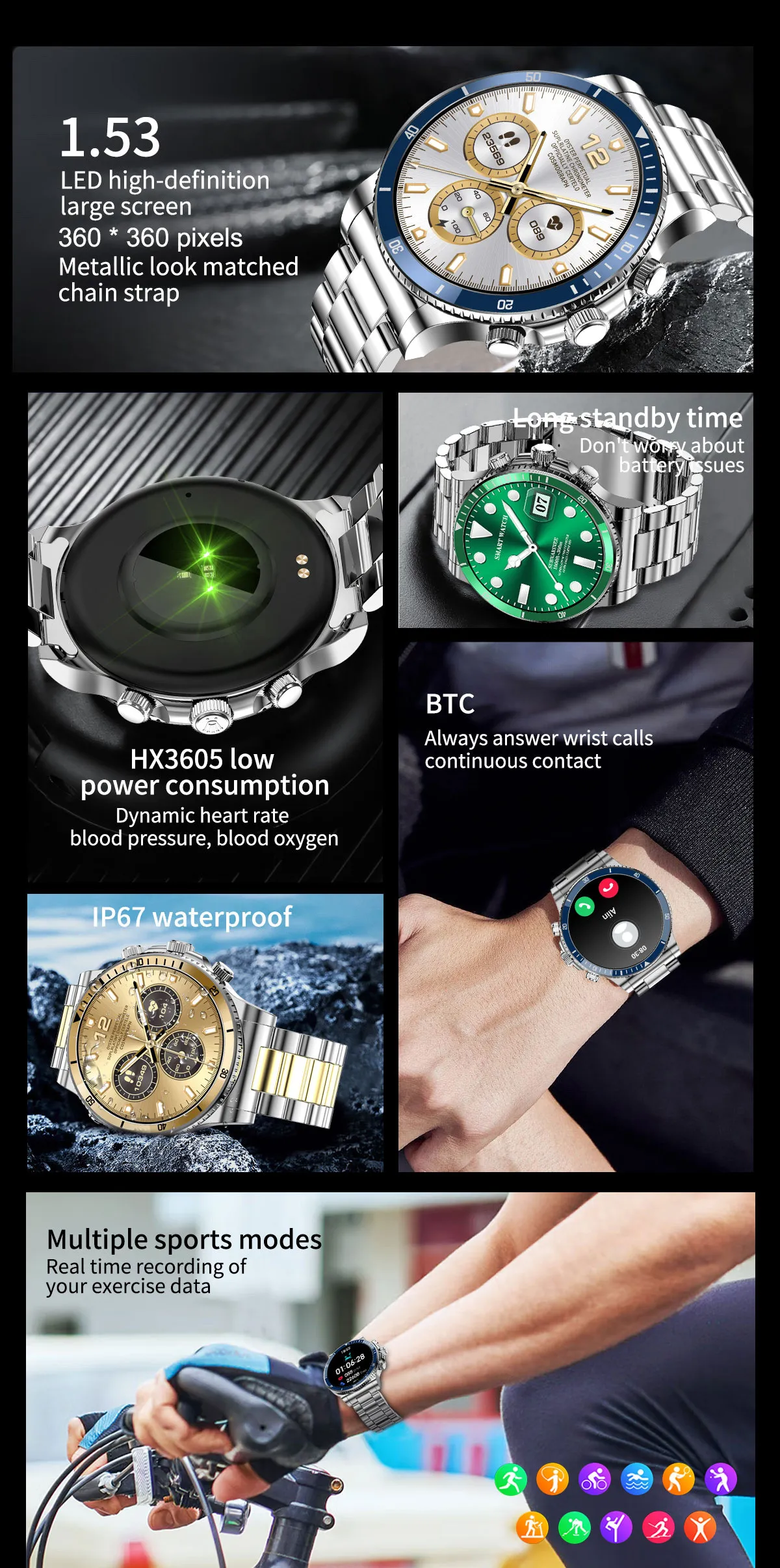 Whether used in the office, during travel, or throughout daily activities, this smartwatch provides convenient access to information while maintaining a sophisticated appearance.