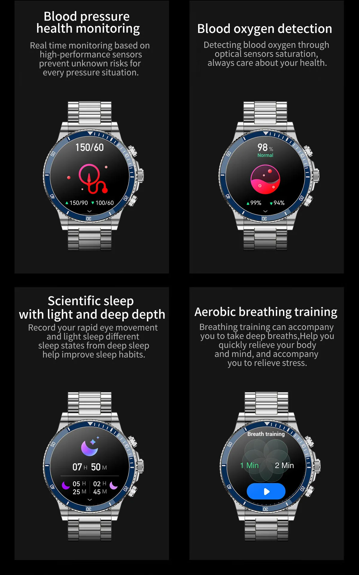 Whether used in the office, during travel, at meetings, or throughout daily routines, this smartwatch combines elegance and functionality to support productivity and personal wellness.