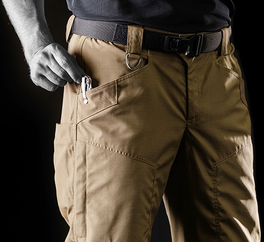 The streamlined design of these Tactical cargo pants incorporates a large yet flat thigh pocket. It’s positioned in the optimal spot to