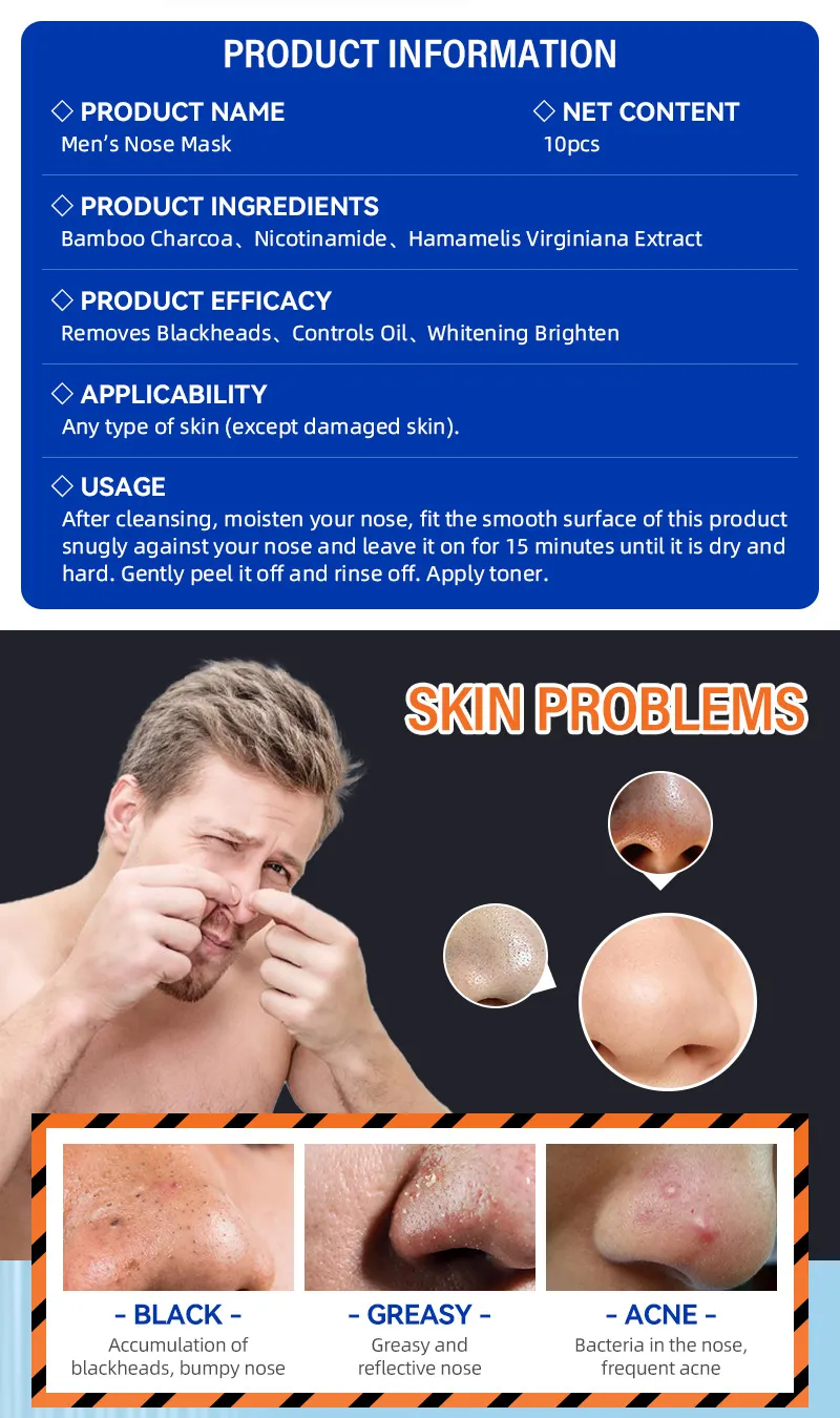 Men's Bamboo Charcoal Black Nasal Sticker Blackhead Removal Cleansing And Pore Refining