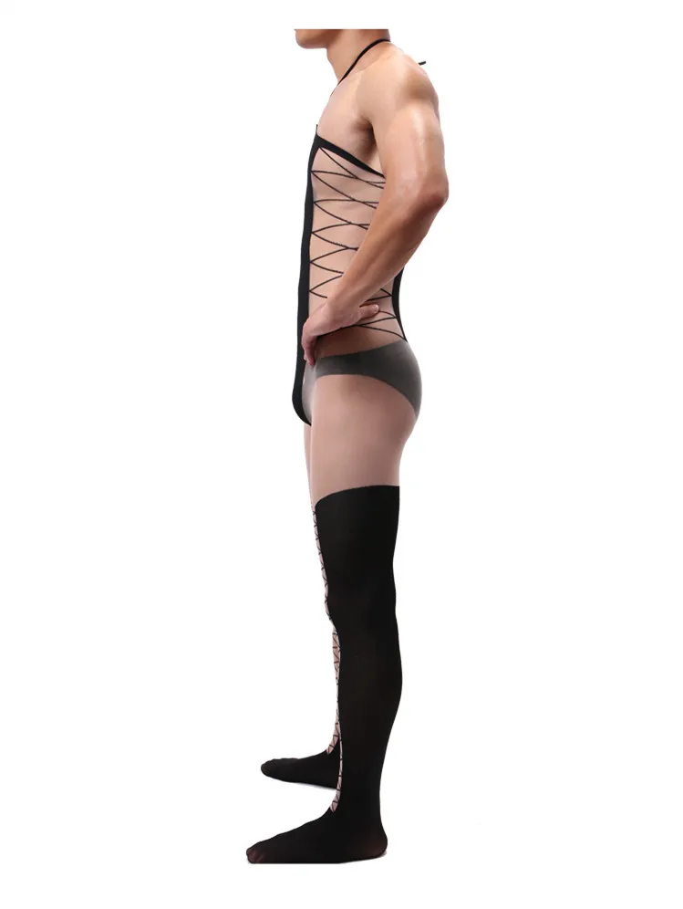 Product Description: Men's Jacquard Sling One Piece Stockings Hollow Silky Transparent