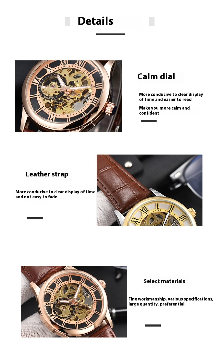 This watch is more than just a timepiece—it’s a reflection of your personal style. The Men's Mechanical Watch Roman Scale Waterproof Fashion Business complements a variety of settings, from corporate meetings to weekend brunches. Its versatile design makes it suitable for pairing with suits, business casual attire, or even smart-casual outfits.