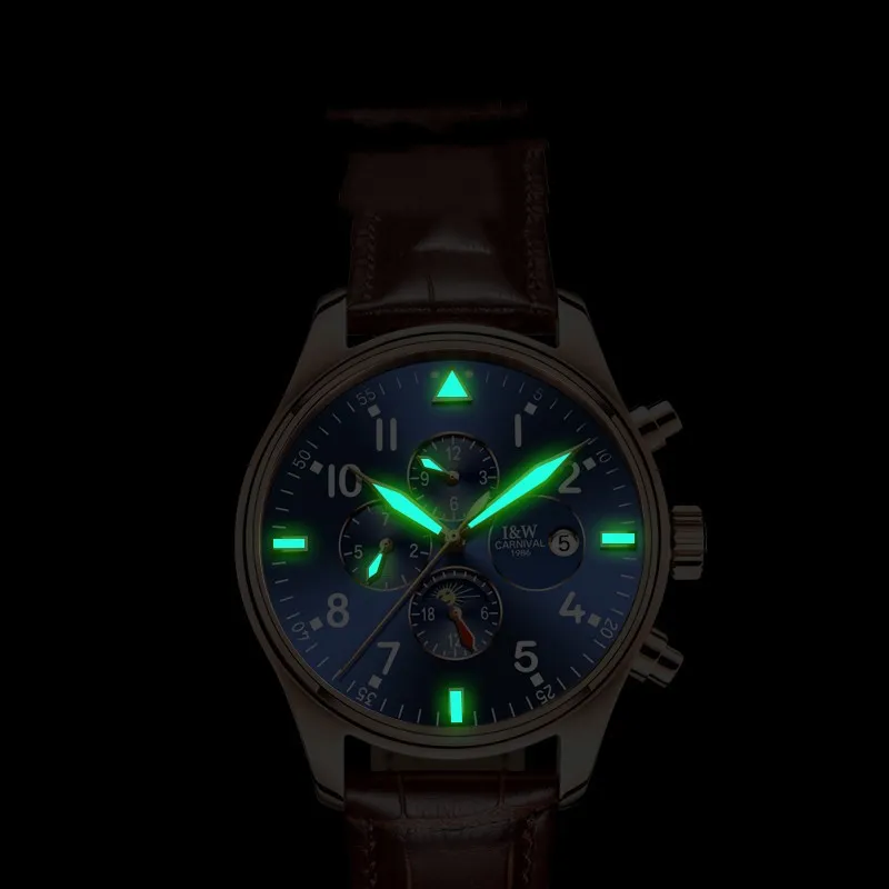 Men's Multifunctional Leather Strap Waterproof Casual Watch