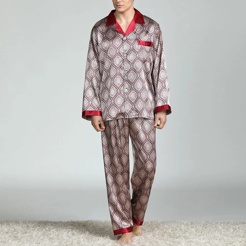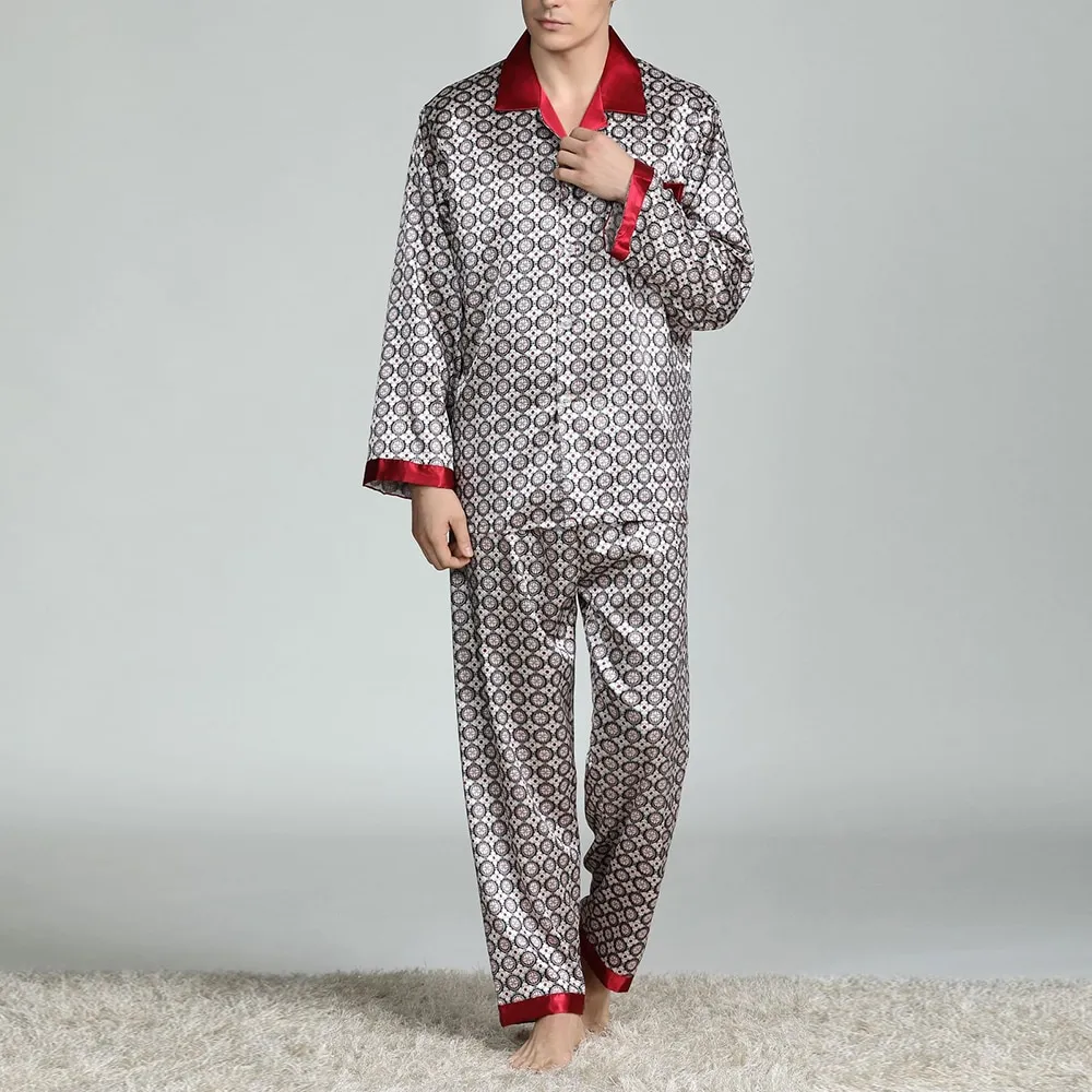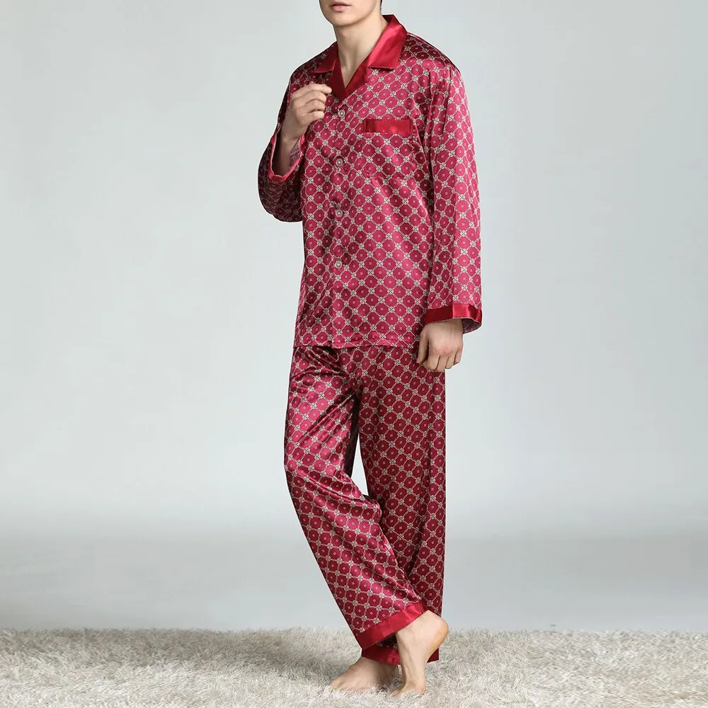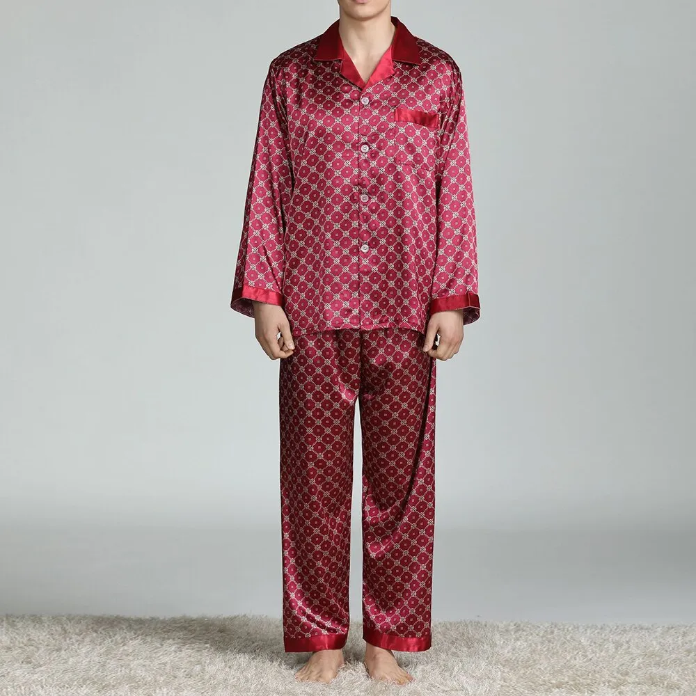 Whether you're winding down after a long day or enjoying a relaxing morning, the Men's Printed Silk Pajamas Spring and Summer Long-Sleeved Suit is the perfect addition to your wardrobe. Elevate your sleepwear with this luxurious set, which blends elegance, comfort, and style for a truly restful experience.