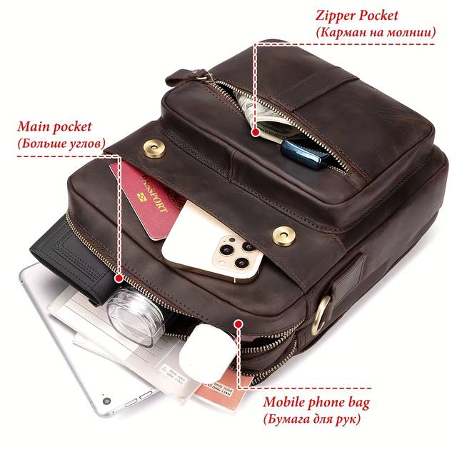 Premium Top-Grain Leather Construction: Crafted from top-quality leather, this bag offers a smooth, durable finish and
