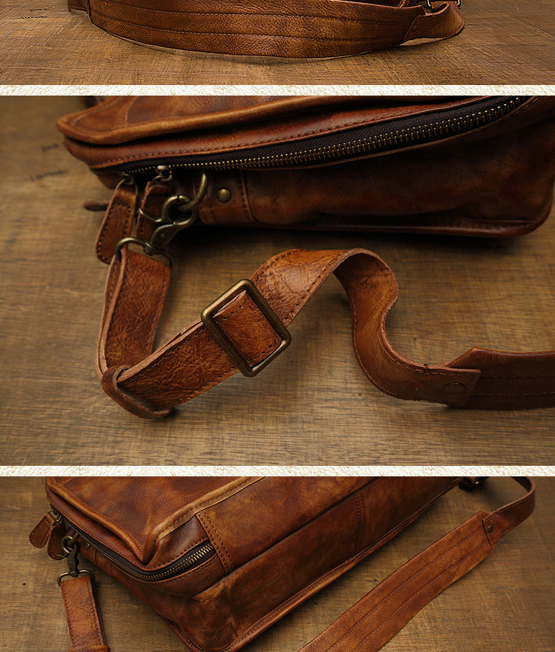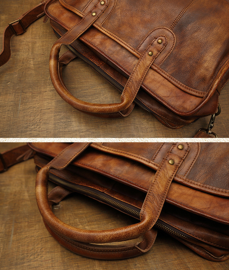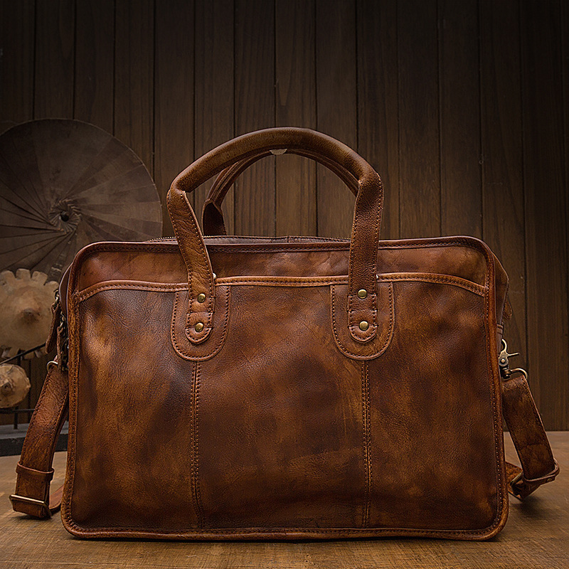 Men's Vintage First Layer Leather Travel Briefcase