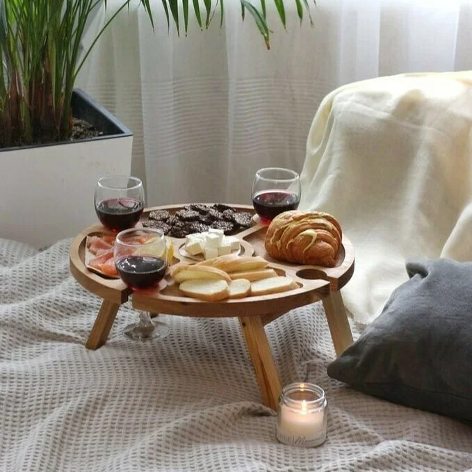 🥂Mesa organizadora de madera. Es adecuado para todos aquellos a quienes les guste disfrutar de una copa de vino con un delicioso queso o fruta.