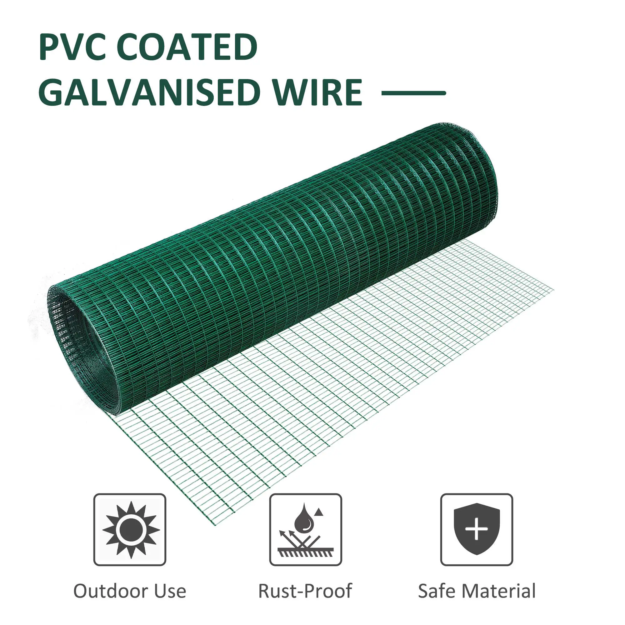 Are you looking for a multi-purpose and convenient solution to enhance or establish fencing protection? This wire mesh fencing can be utilized with any existing poultry henhouse, animal kennel, bird aviary, and even fruits and vegetable gardens. This mesh pet and garden fencing is rust-resistant due to pvc coating, but will not fall apart easily due to steel wire construction. In addition, you can bend and cut apart the metal wire fence to suit a variety of situations and ensure peace of mind that your set up will not be easily destroyed.