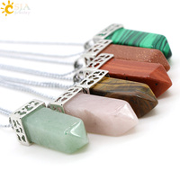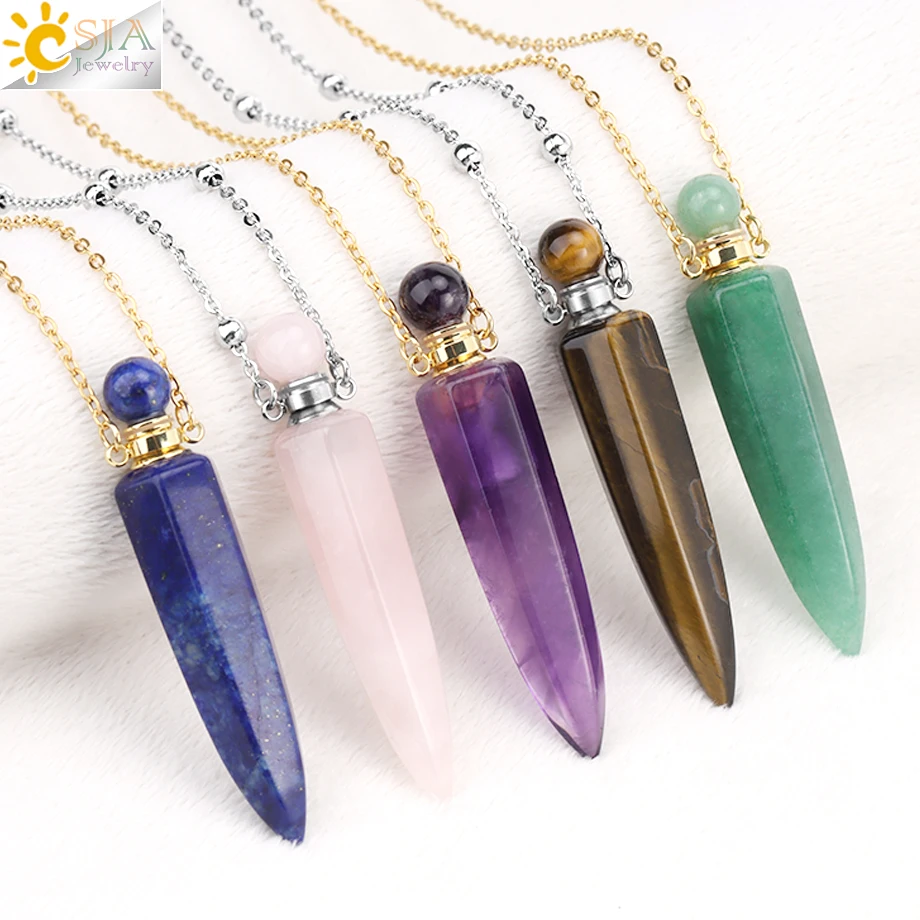 CSJA Crystal Perfume Bottle Women Necklace Natural Stone Hexagonal Cone Pendant Reiki Oil Diffuser Necklaces Christmas Gift H358 | |