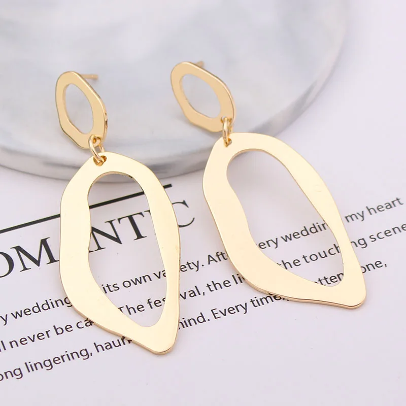 Metal Color: antique silver - Gold Color Metal Drop Earrings Irregular Hollow Heart Pendants Earrings Twisted Geometric Personality Earrings for Women