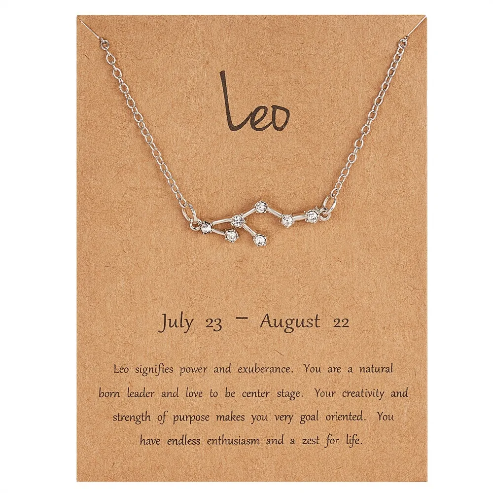 Metal Color: Antique Silver Plated - 12 Constellation Pendant Necklaces Jewelry Choker Necklace Zodiac Sign Charm Necklace Birthday Gifts Aquarius Pisces Leo Virgo