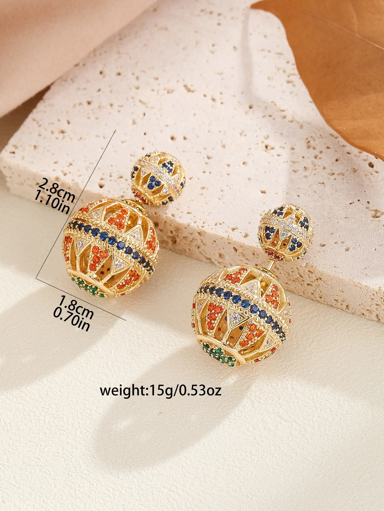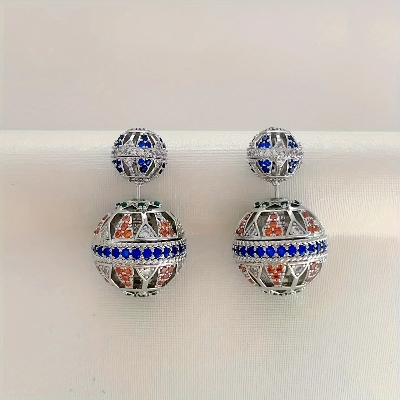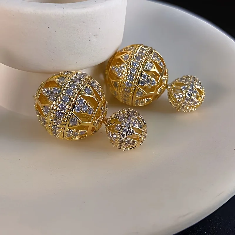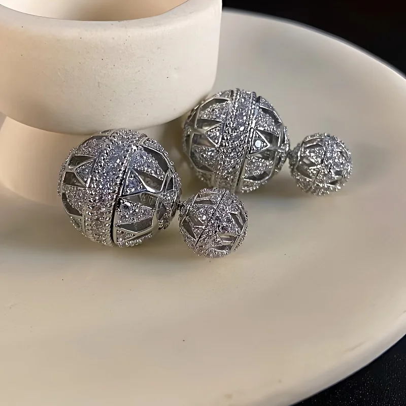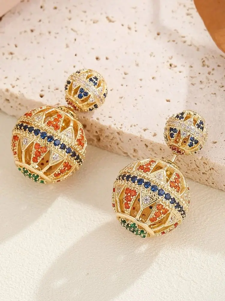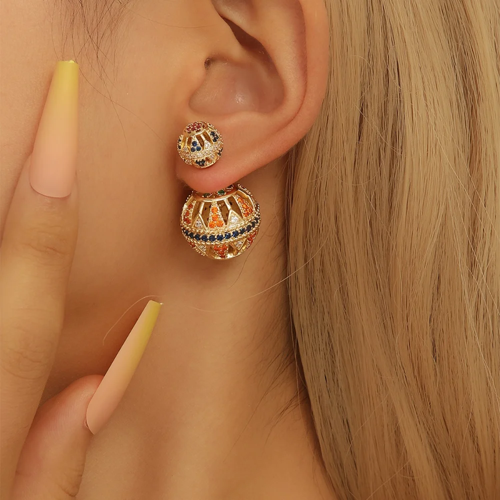 Metal Color: Antique Silver Plated - Heavy Industry Hollow Ball Personalized Exaggerated Colored Zircon Earrings Unique Design Earrings Women's Party Gift