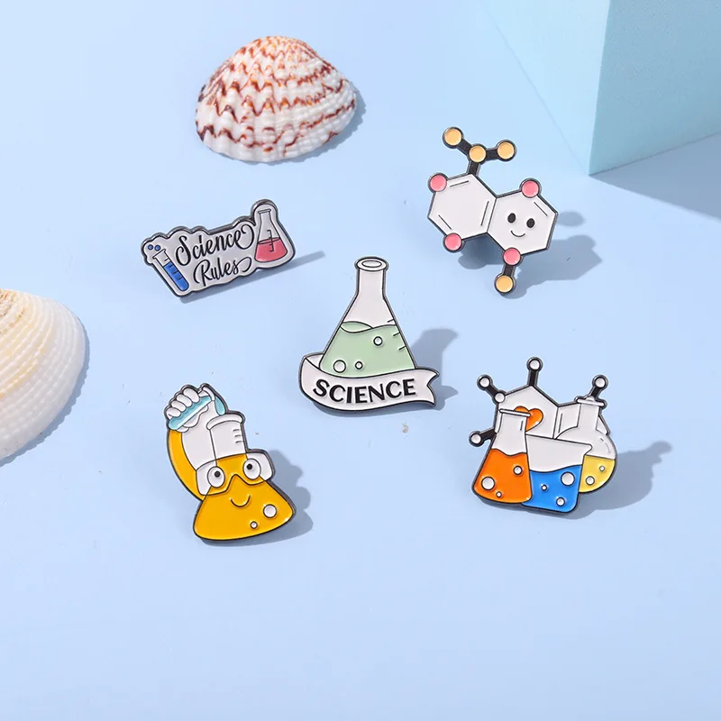 Metal color: Black Zinc Plated - Chemical Brooch Equation Brooch Geometric Brooch Beaker Tube Cup Geometric Molecular Micromirror Alcohol Lamp Modeling Lapel Pin