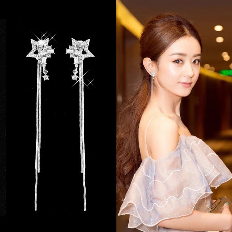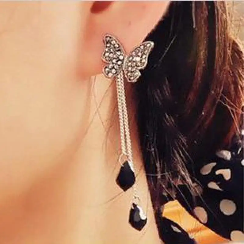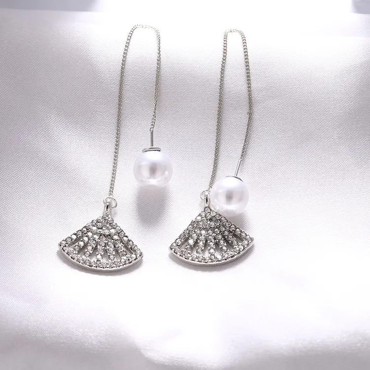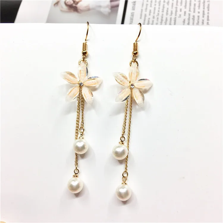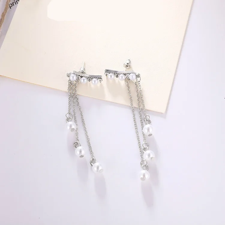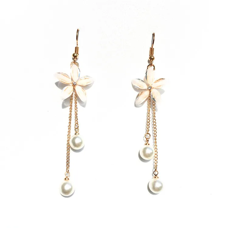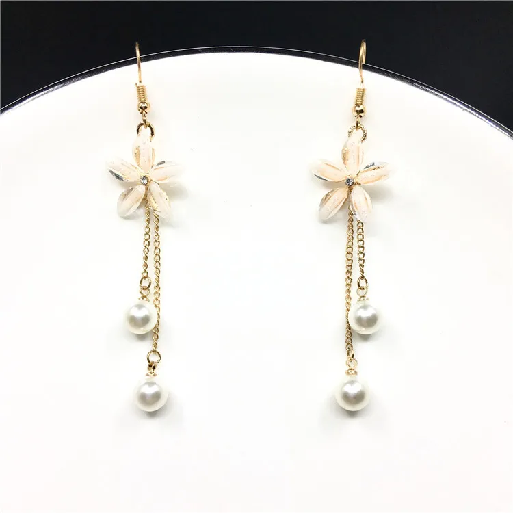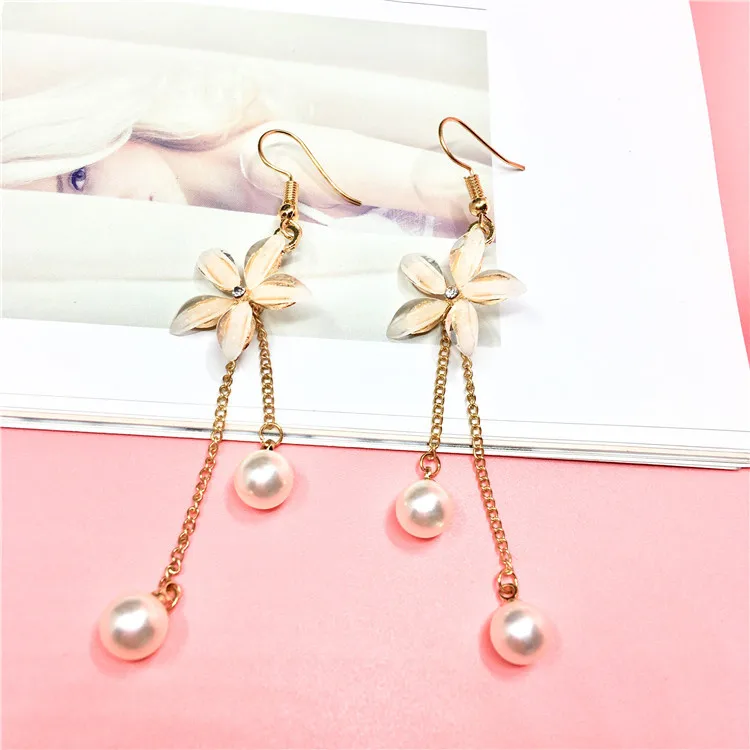 Metal Color: Black Zinc Plated - Flower Earrings 2019 Punk Fashion New Earrings Lady Wild Chain Pearl Crystal Flower Earrings Gift Wholesale Ladies Earrings