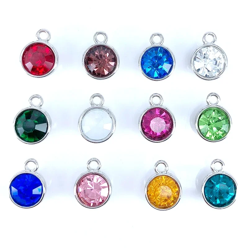 Metal color: Blue white zinc plated - 150pcs/lot mixed Birthstone charms 11mm Acrylic for DIY jewelry