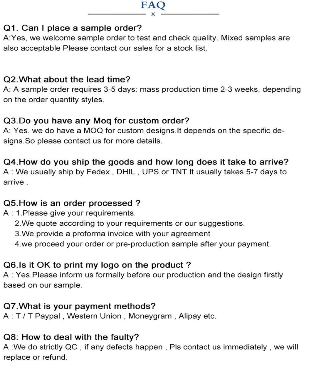 A: Of course, each product has been carefully selected, and there will be no quality problems in long-term wear.