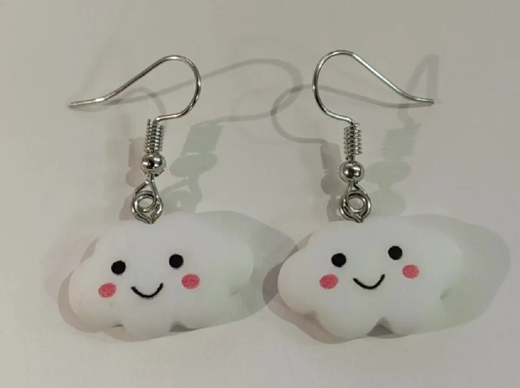 Metal Color: Blue Zinc - Ultra-Low New Fashion Cute White Cloud Stud Earrings Delicate Mushroom Clouds for Women Girls Ear Jewelry Wholesale Gifts Bear