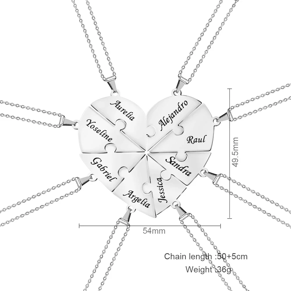 Metal Color: Dark Gold, Length: 55cm, Main Stone Color: Gold - Personalized Charm Stainless Steel Pendant Name Jigsaw Heart Necklace for Women Jewelry for Men Family Name Chains Necklace