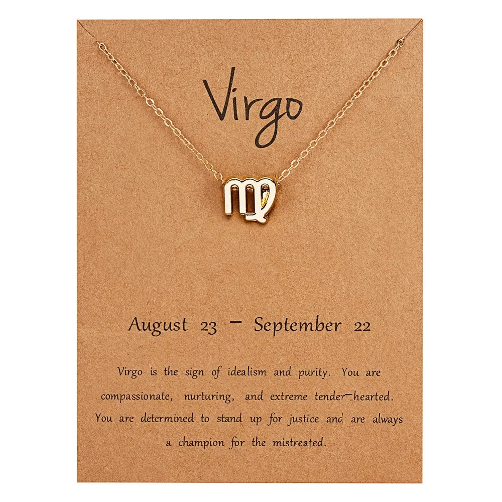 Metal Color: Gold-color - 12 Constellation Pendant Necklaces Jewelry Choker Necklace Zodiac Sign Charm Necklace Birthday Gifts Aquarius Pisces Leo Virgo