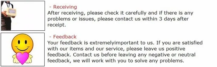 If you are satisfied with the items and our service, please take a minute to leave us a positive feedback with 5 stars, we will gladly do the same for you.