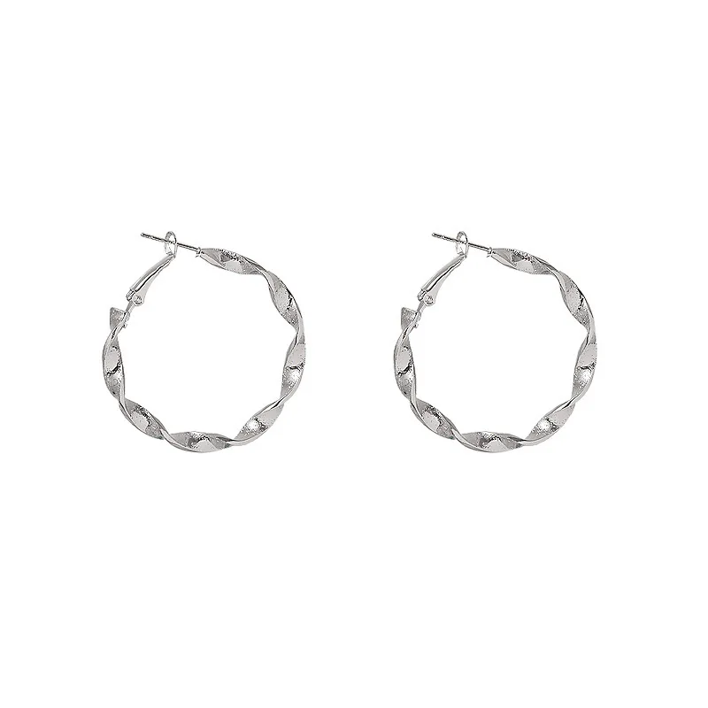 Metal Color: Gold-color - Exaggerated Spiral Wave Hoop Earrings for Women Simple Personality Frosted Metal Huggie Jewelry Brincos Christmas Day Girl Gift
